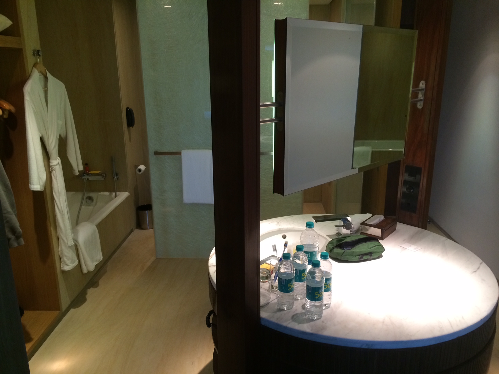 The flight itself wasn't as bad as I expected, and the Boeing 777-200LR that made the Seattle-Dubai leg was probably the nicest commercial aircraft I've been in. Legroom wasn't perfect, but the seats in front of me had room underneath them such that I could stretch both legs a bit farther forward, which helps considerably. Overall the comfort level was good enough, and I dozed off a handful of times during the flight, an hour or two here and there.