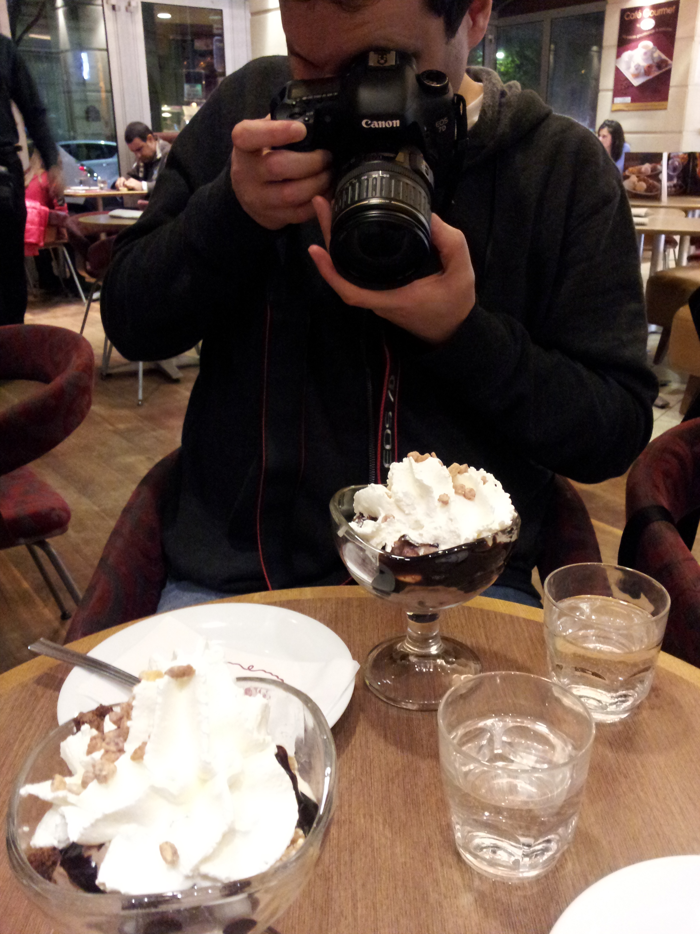 We decided to put some distance between us and the tower before eating so as the avoid the tower-view price levels, and eventually settled on a place to eat. I had some caramelized duck which was quite delicious. On the way back we decided to the stop by Häagen-Dazs for some dessert. Apparently everything is a sit-down restaurant in France, and they had full-on menus and waiters. I suppose I should have expected that, but it was somewhat surprising nonetheless.