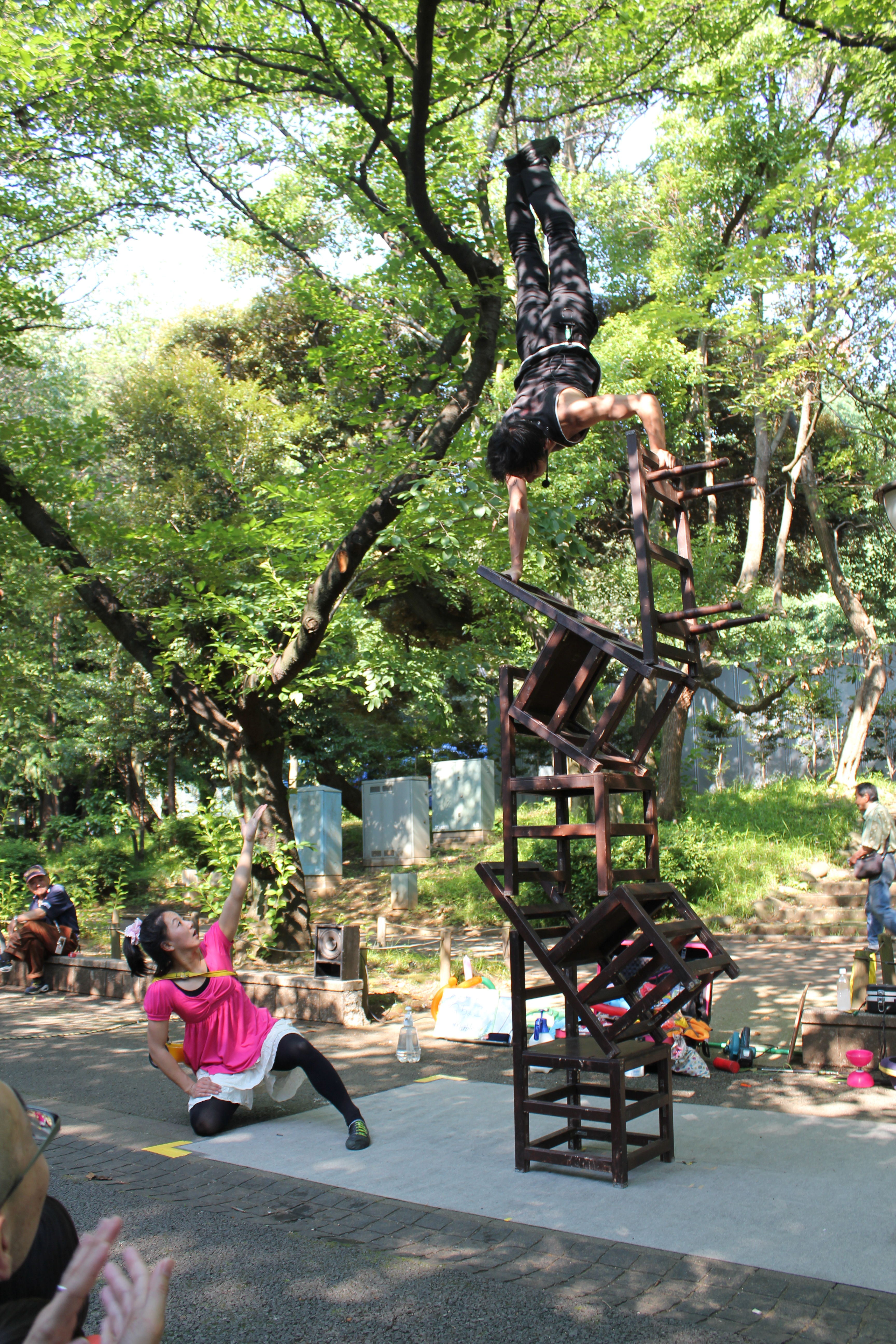 The park was a pretty chill place, and the first thing we came across was a memorial to a battle that took place during the unrest before the Meiji Restoration. After that we set off for the main attraction of the park, the Toshogu Shrine for Tokugawa Ieyasu, the first shogun of the last shogunate period of Japan's history. On the way to the shrine we came across some street performers who were stacking chairs and doing handstands and things on top of them. It was pretty entertaining, and they made a good show out of it. Occasionally they would start a move and then hesitate, looking at the other with a look of sheer terror and violently shaking their head "no". We all enjoyed it and gave them some yen before moving on.