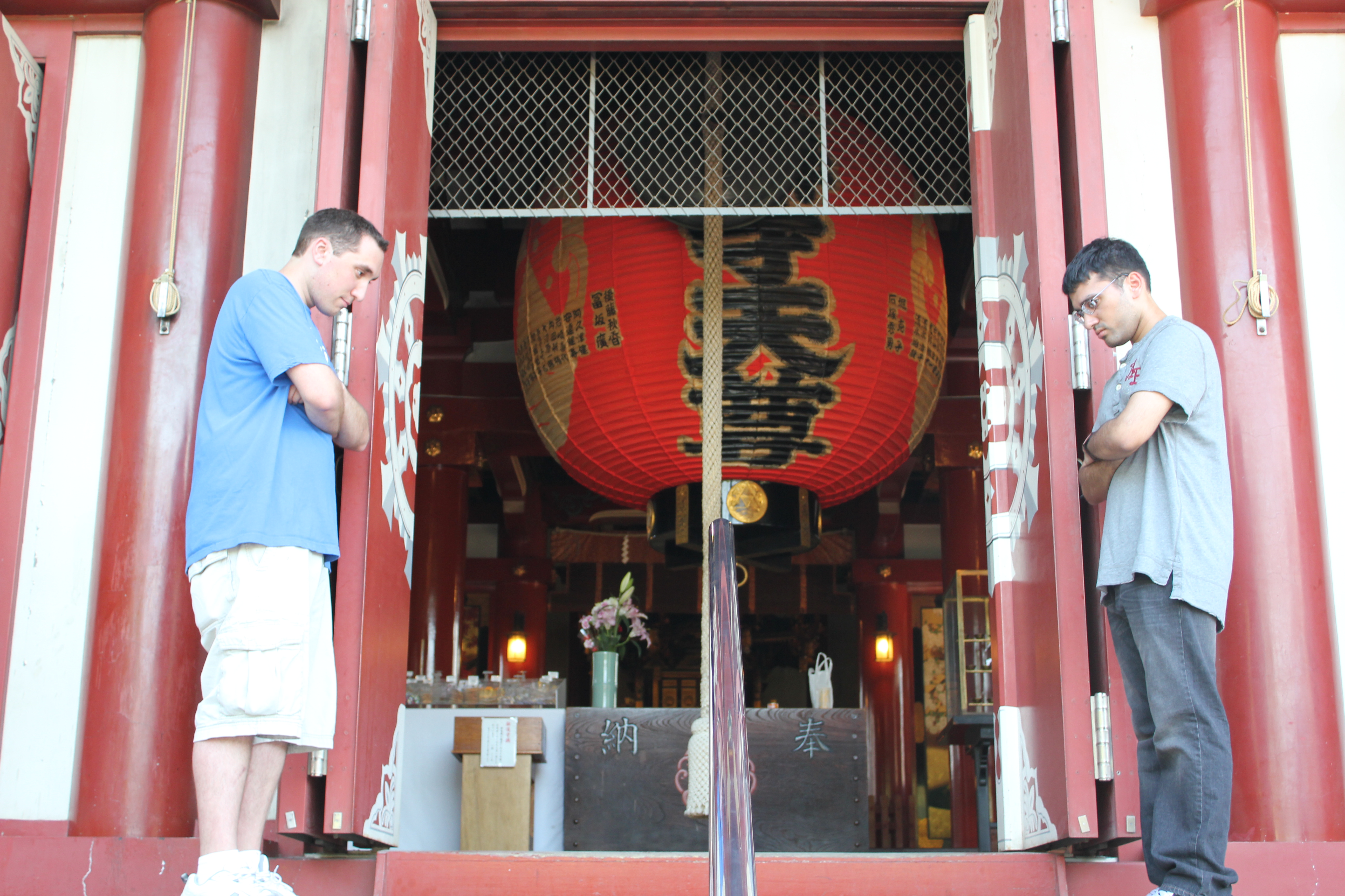 As we soon discovered, Toshogu Shrine was under renovation. There was a large poster put up in front of the shrine with a picture of it in its usual splendor to hide the construction. A bit disappointing, but there was plenty of cool stuff in the area so we continued. We wandered around a bit more and found a couple more cool shrines, one of which was located on at the end of a pier that stretched out into the nearby lake. The lake barely looked like one, as it was completely covered in some kind of lilypad-like greenery, making it look more like a meadow than a lake. Nonetheless, the shrine was beautiful. I tried to do the whole shrine ritual this time around, but was quickly stumped at the incense table. I managed to wash my hands at the fountain fine, but I couldn't for the life of me figure out how to light the incense. After the other guys had a look, we decided that the flame must have burned out or down and gave up.