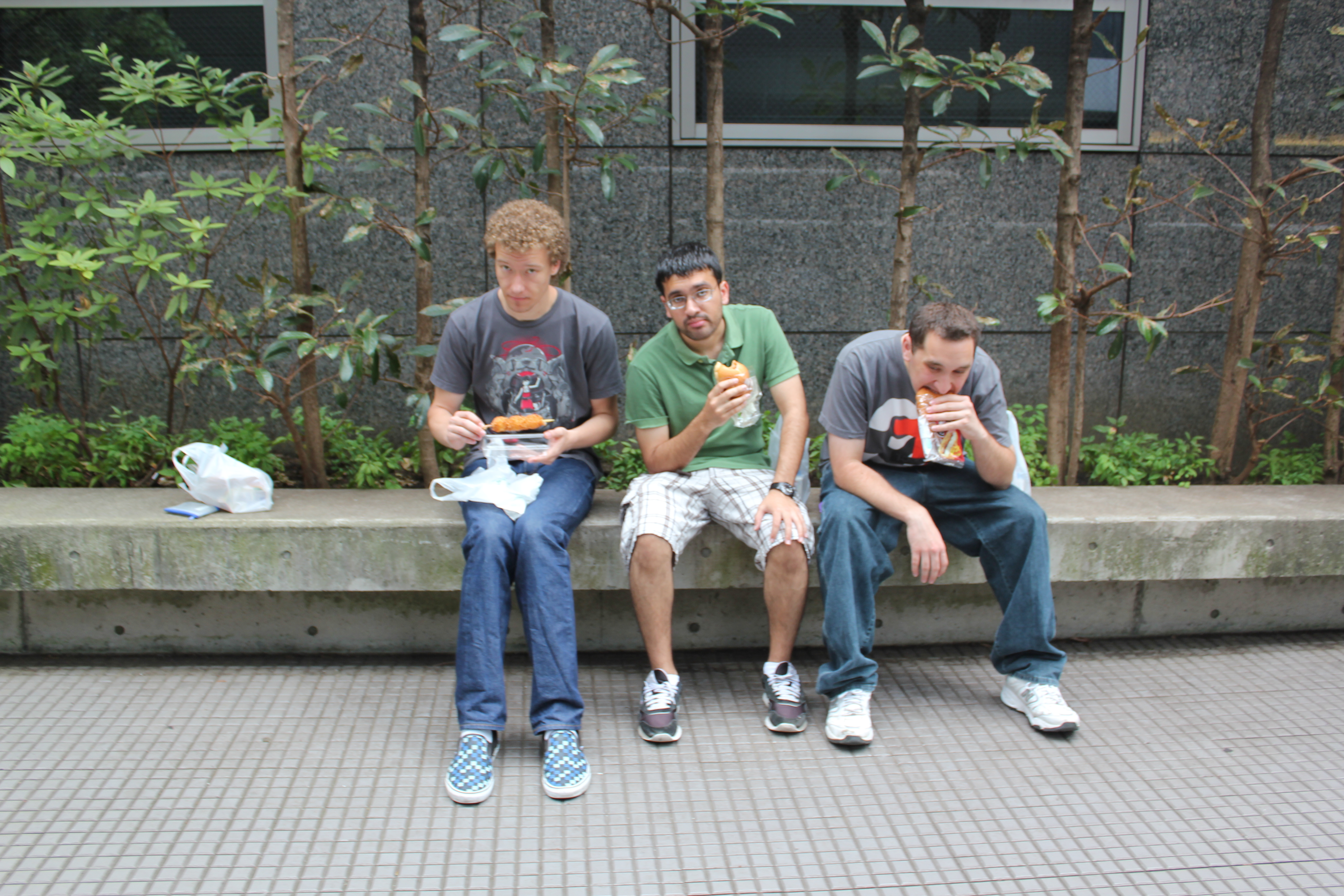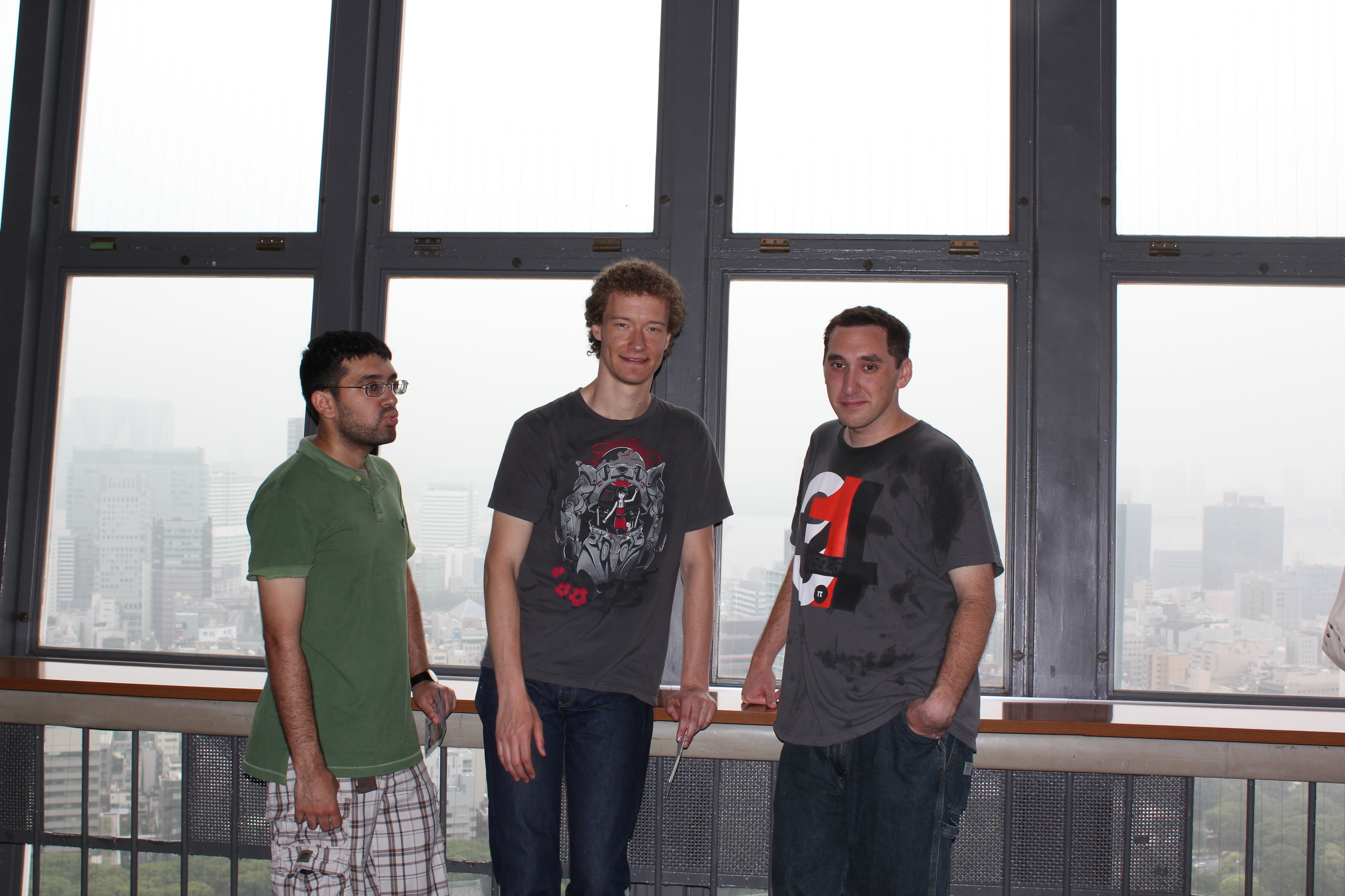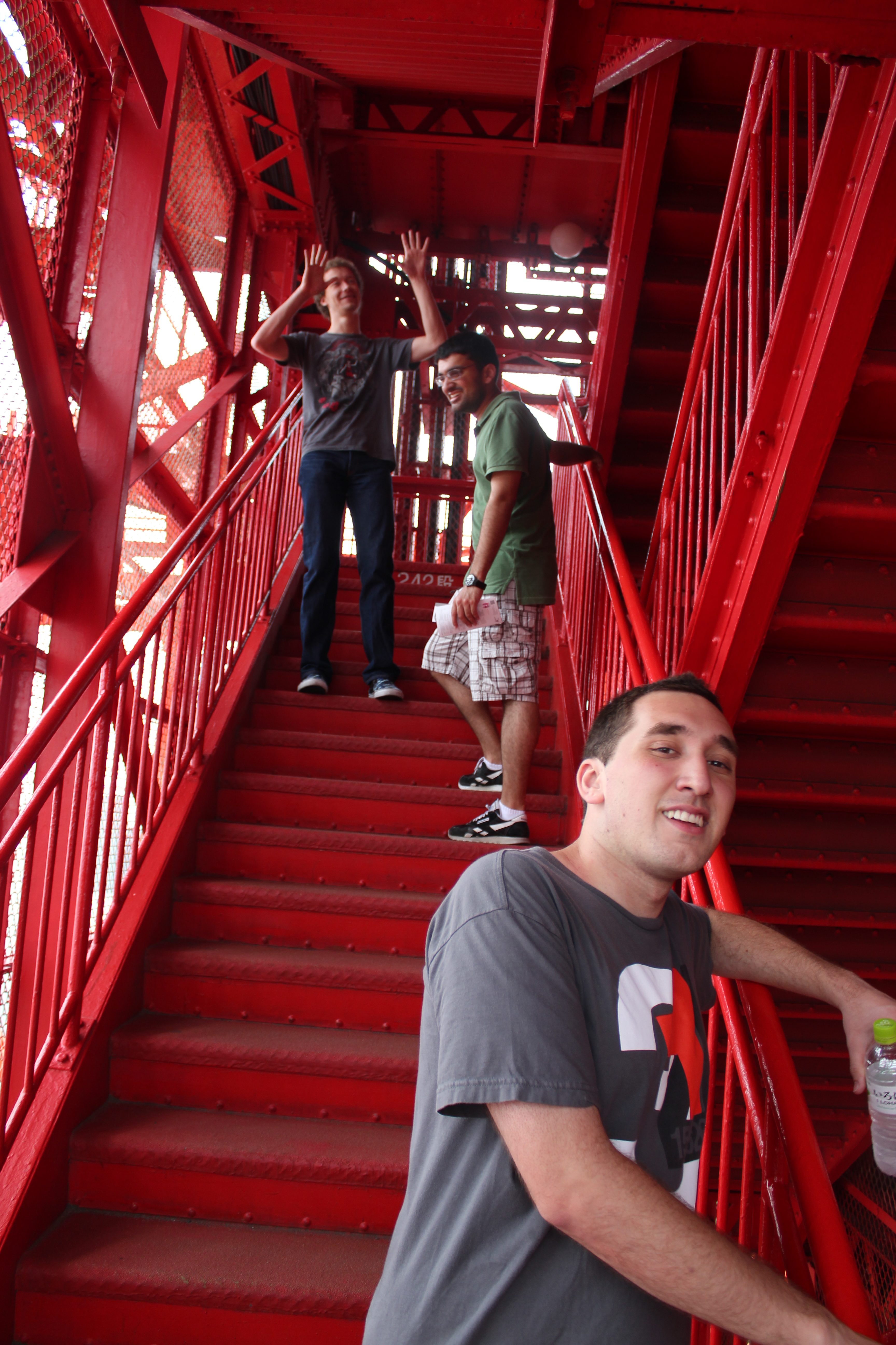 It was a little overcast that day, and we were glad it didn't end up turning stormy as they close the upper parts of the tower in bad weather. Our main goal at Tokyo Tower was to traverse all the stairs to the observation deck, as I had seen somewhere on the internet that they give out certificates to anyone to completes the climb. We all toughed it out through the 600 or so stairs up the tower, getting pretty hot and sweaty by to top. We were most disappointed to find that the observation was completely enclosed with no access to fresh air, so we just had to sit down and sweat it out. We all got some souvenirs (I got a postcard for my Grandma) and ice cream before heading back down. We took some pictures with silly poses at the bottom of the tower on the way out, and were most pleased when a couple of Japanese tourists asked us to take their picture and struck the same pose as us.