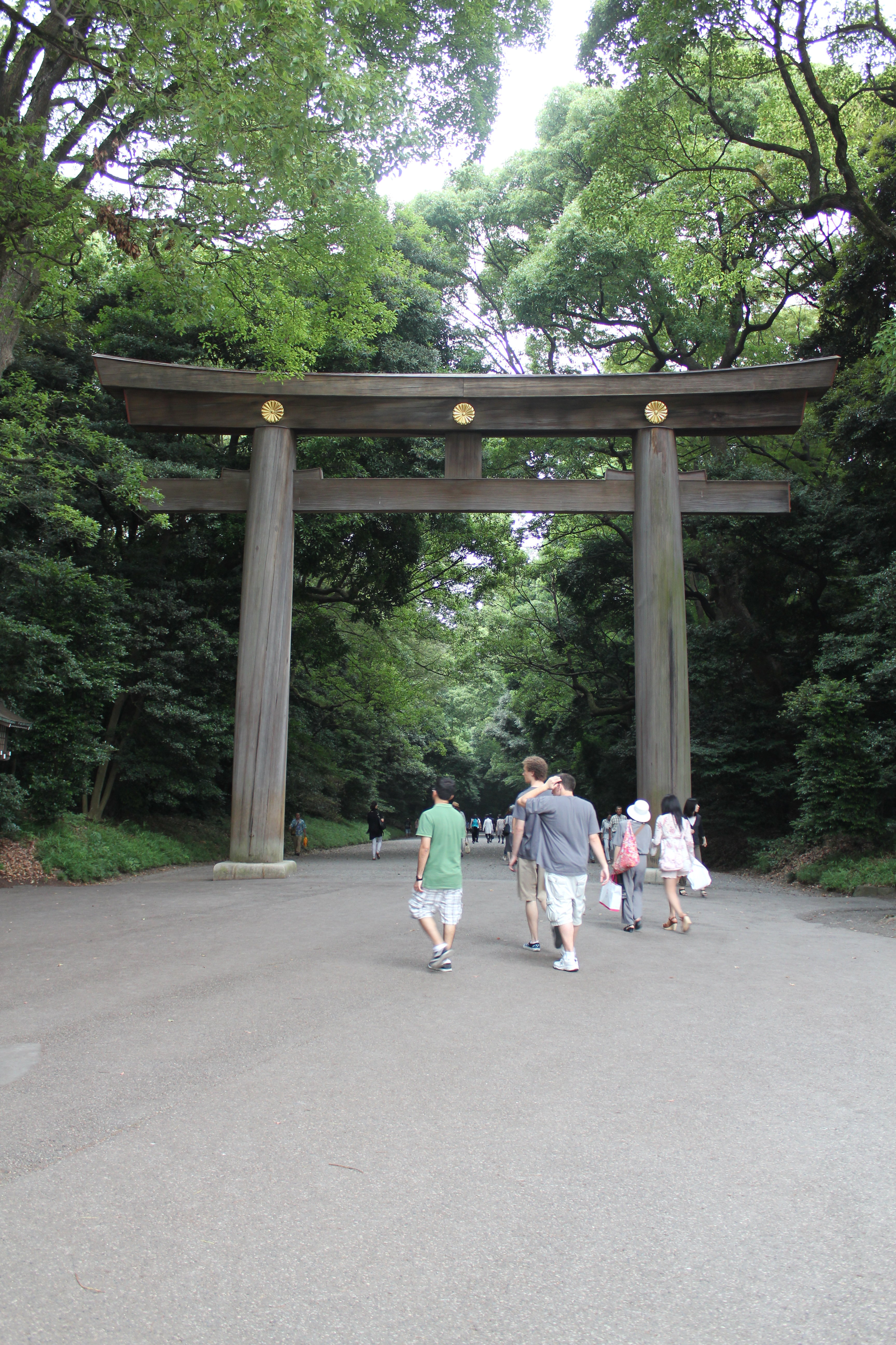 We decided to stop by the hotel in Shinjuku before continuing on, as Brian needed to grab a new battery for his camera. Per tradition, we spent some time getting lost again attempting to navigate Shinjuku Station. Eventually we recovered and headed to the next stop: Harajuku (原宿). On Sundays, Harajuku is a big hangout for members of an eccentric fashion subculture usually referred to as "Harajuku Girls". We ended up arriving a bit late for that and didn't see much, so we went to nearby Yoyogi Park (代々木公園) instead. Yoyogi Park is home to the Meiji Shrine (明治神宮), which was incredibly serene.