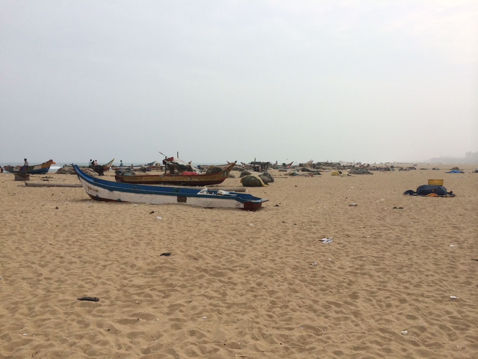 Next up was the beach. The beach was surprisingly large in all directions, such that even the walk to the water was considerable. Nawab made sure to find an easily identifiable parking spot and point out the landmarks to me so that I could find my way back. The beach itself left something to be desired: the haze made it difficult to see very far down the shoreline or out to sea and what you could see was littered with trash. Nevertheless it was nice to get a short walk in. The most interesting thing about the beach was the large number of beached boats all along the shore. It still is unclear to me what purpose they serve. Before long I was getting hot and decided it was time to move on.